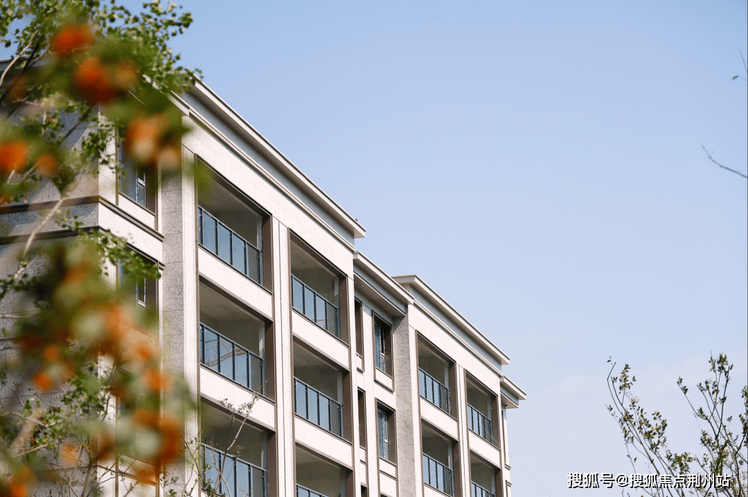 巴西白玫瑰干挂石材的外立面,搭配香槟金铝板与浅灰冷色调,颜值极佳,且品质感十足。
