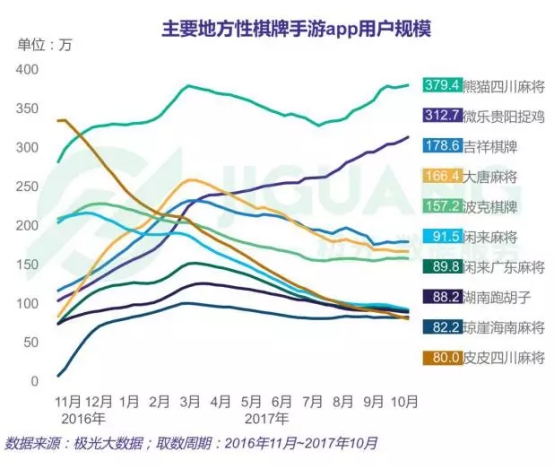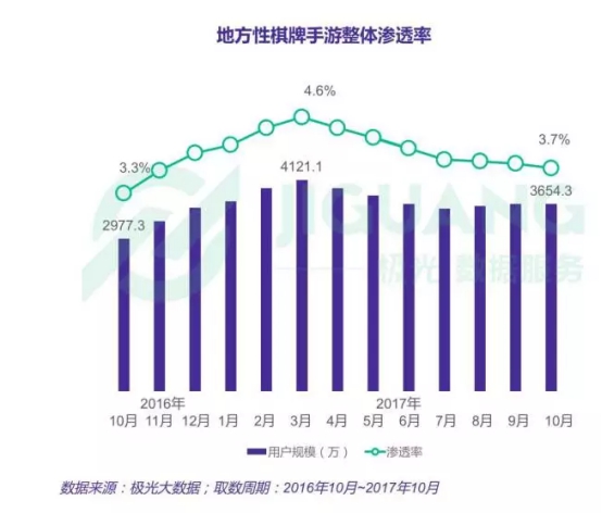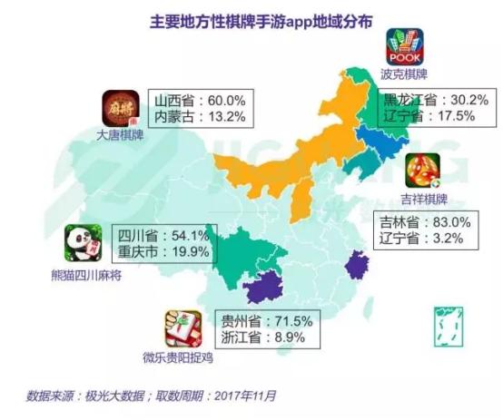 那么2017年的地方性棋牌游戏市场是怎样的呢?今天(11月21日)极光大数据发布了《2017年中国地方性特色棋牌游戏研究报告》,从地方棋牌游戏的发展历程、渗透率、地域分布、DAU、用户画像等角度来解析这个暴利的行业,手游那点事结合市场情况对其进行分析解读。
