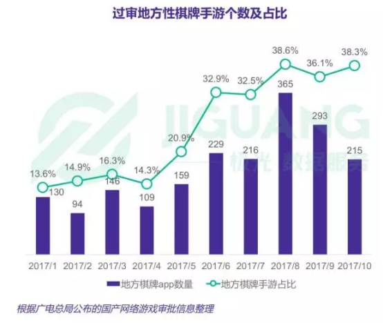 3.入局者甚多,2017年1-10月过审的地方性棋牌游戏数量高达1956款