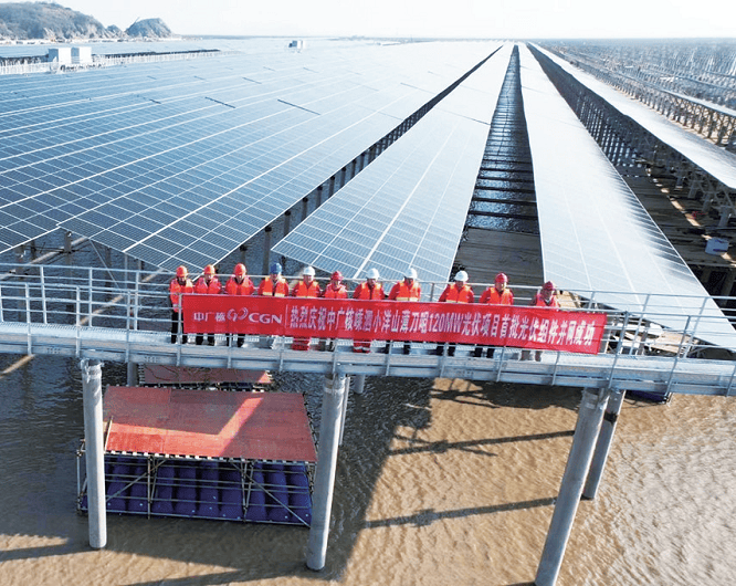 该项目主要利用滩涂地开发光伏发电。据中广核新能源浙江开发部相关工作人员介绍:“与相同发电量的火电相比,该项目每年可节约标准煤约4.08万吨,减少排放温室效应性气体二氧化碳11.19万吨。”