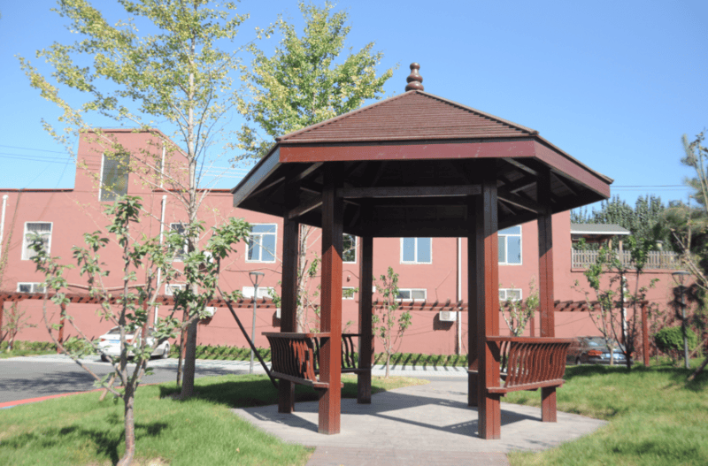 环境如园林:中国老龄事业发展基金会北京松堂关怀医院主楼共三层,二层、三层为病房,一层为医生办公、行政区域及活动室、会议室,整体设计古色古香,充满中国古典园林特色,小桥流水、花台鱼池、廊檐石阶、古钟佛像错落其间,环境清幽雅致,置身其中,丝毫感受不到医院的冰冷,更像是一座静谧的疗养院,让长者在舒适、温馨的环境中度过晚年。